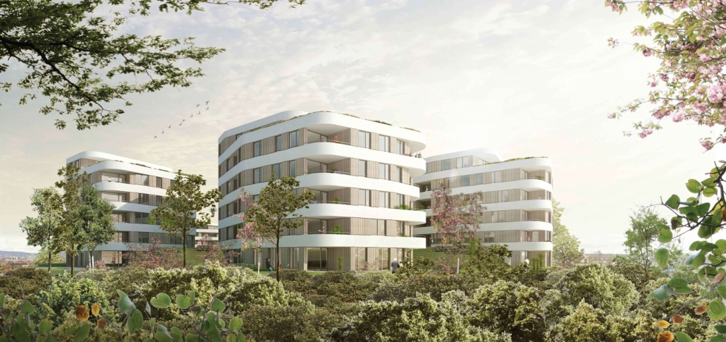 Die Architektur des Wohnquartiers wurde 2017 in einem Realisierungswettbewerb von einer hochkarätig besetzten Jury ausgewählt. Als klarer Sieger gingen damals die Entwürfe der Architekten Schaltraum aus dem Wettbewerb hervor. Das Konzept überzeugte die Experten „in seiner gelungenen Gebäudestruktur und den kreativen Entwurfselementen, und weiterhin nicht zuletzt auch wegen seiner wirtschaftlichen Effizienz.“